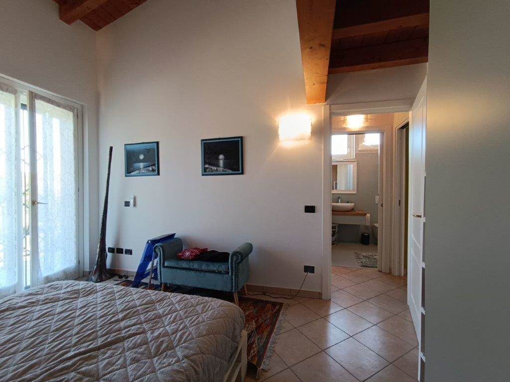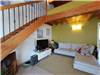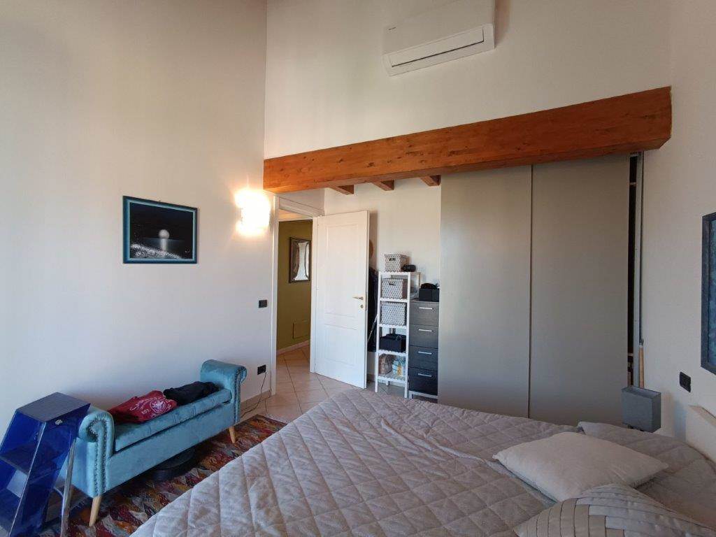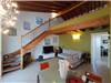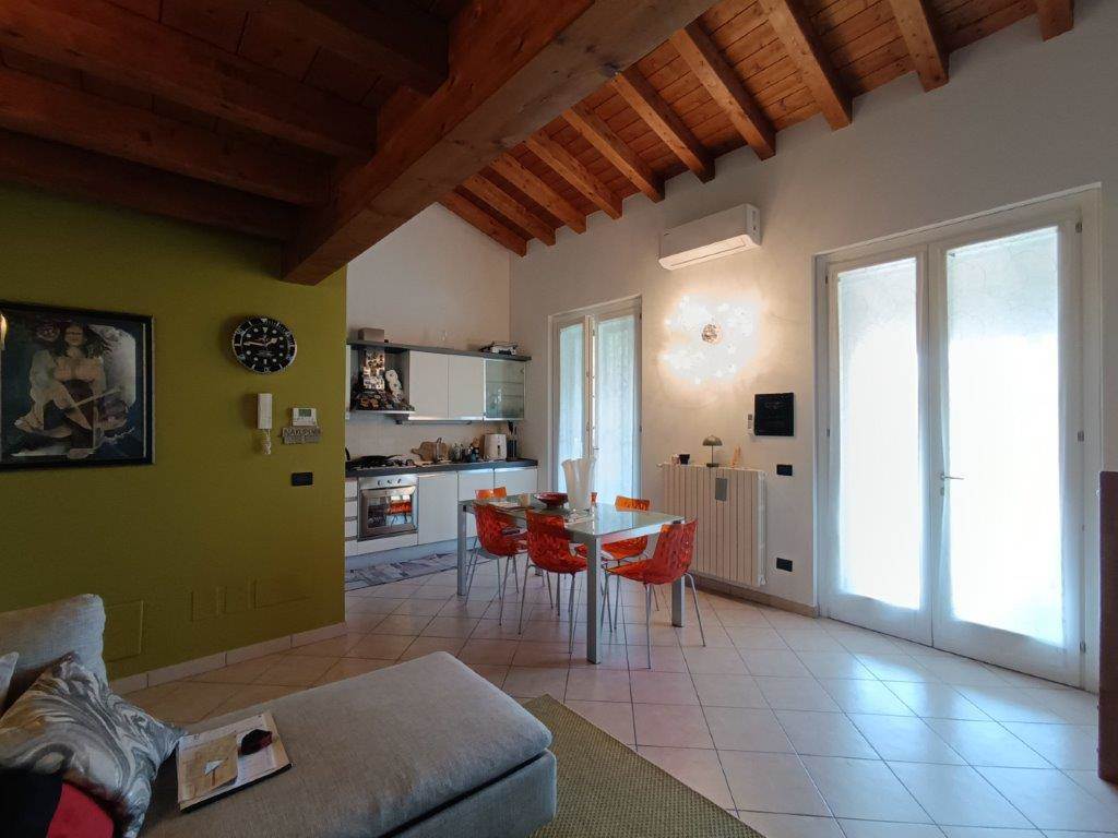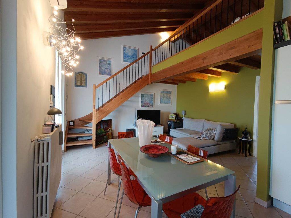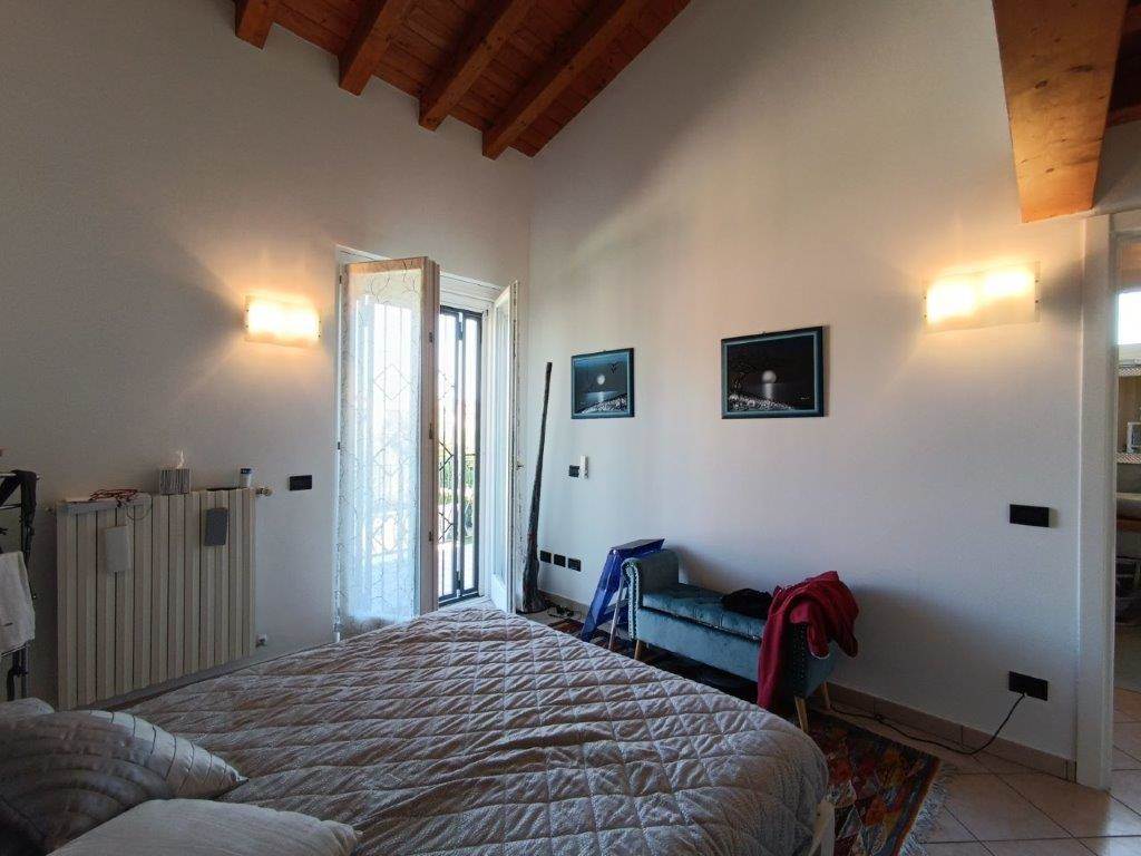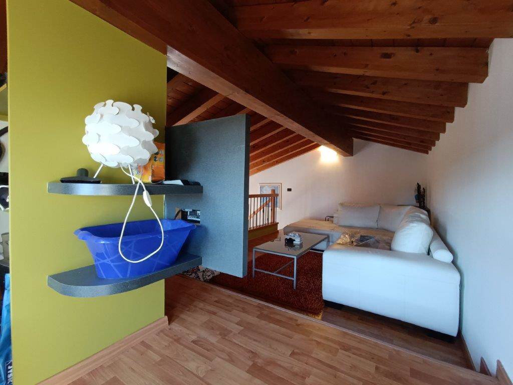 Il soggiorno, molto luminoso, è impreziosito da una grande altezza interna, sovrastato dal tetto in legno con travi a vista per tutta la sua superfice. La zona cucina, parzialmente separata, dispone di un'ulteriore portafinesta che accede sempre al terrazzo e volendo, vi sarebbe la possibilità di renderla anche completamente separata senza opere murarie invasive ne costose.