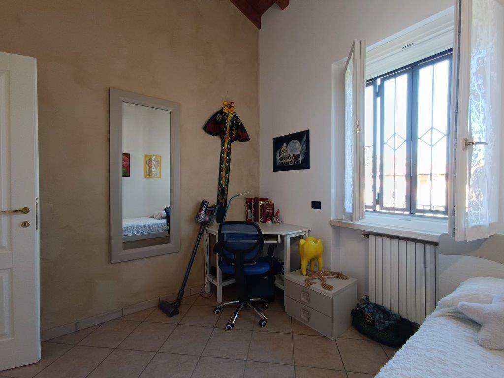 Ancora dal soggiorno, una comoda scala in legno permette di accedere a un soppalco di grande dimensione e strutturato per buona parte dell'intera superfice dell'appartamento con altezza di m. 1.85 ricavando quindi un prezioso spazio complementare al soggiorno quale terza cameretta, studio, ripostiglio, zona ideale per le vostre passioni. E' inoltre ricavato un'utile disbrigo-sgabuzzino.