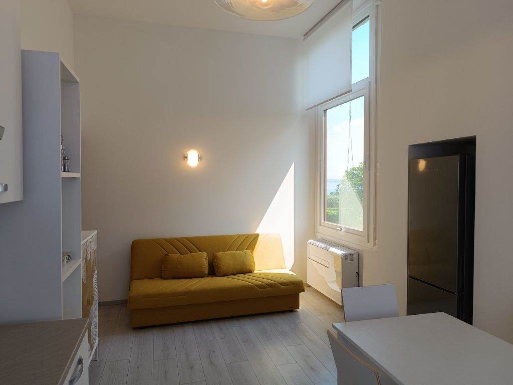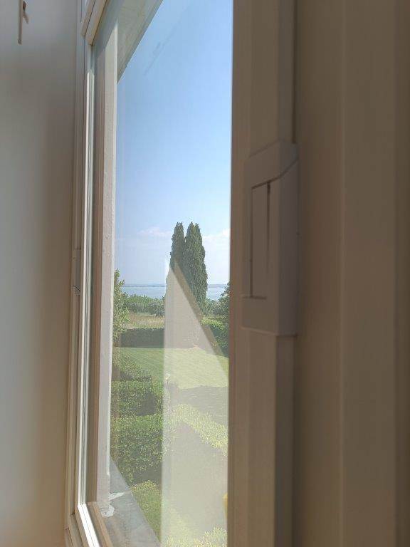 In soggiorno, dalla grande finistra panoramica apribile a ribalta, si intravede il lago --- si chiarisce che l'appartamento non è dotato ne di balcone ne di terrazzo come da foto ---. Termoautonomo con 2 pompe di calore - condizionatori che riscaldano in inverno e raffrescano in estate tutti gli ambienti, molto performante.