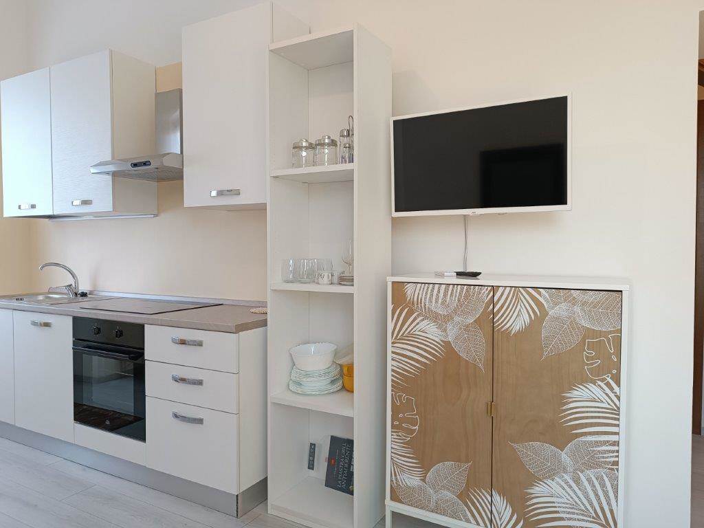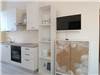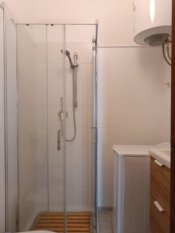 Disposizione: ingresso da vano scale comune, corridoio con armadio e asciugatrice, disimpegno, accesso al soggiorno con angolo cottura dotato di divano letto, bagno con doccia e aerazione dotato di lavatrice, camera matrimoniale.