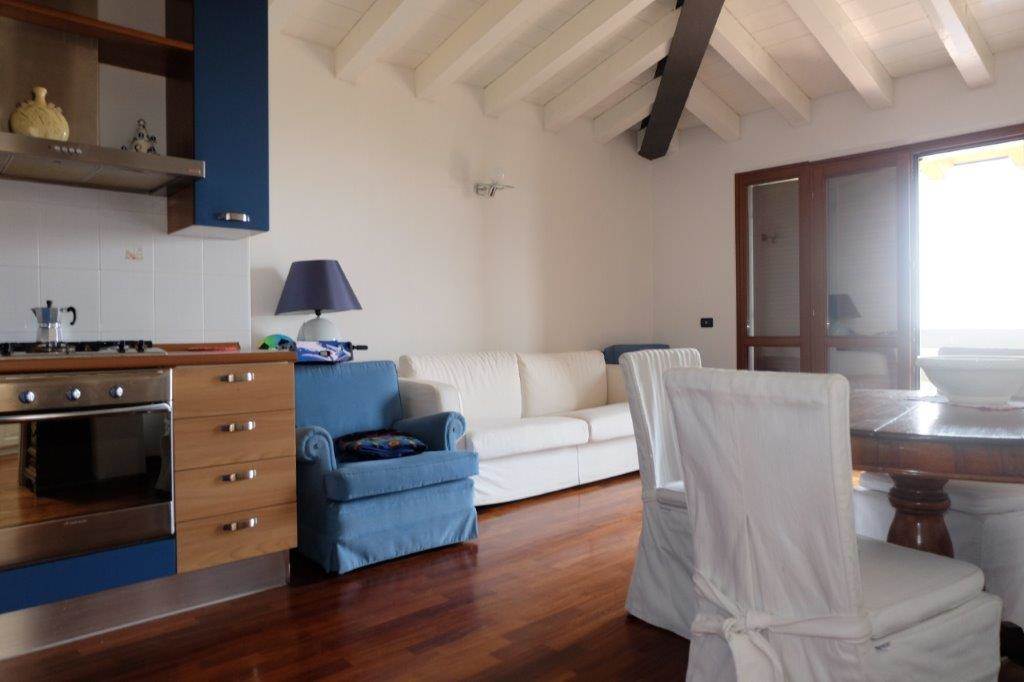 Stupendo ampio BILOCALE mq. 70 PIANO ULTIMO con TERRAZZO FRONTE LAGO e dalla BELLISSIMA VISTA a 2 passi dalla incantevole passeggiata. Piscina e verde comune. Piccolo contesto di 8 unità con GARAGE al piano interrato. Dal corsello comune dei box, tramite l'ascensore, si accede direttamente alla porta di ingresso dell'appartamento. Composizione: ingresso, ampio disimpegno, soggiorno, angolo cottura, terrazzo fronte lago, bagno finestrato con lavatrice, camera matrimoniale.
